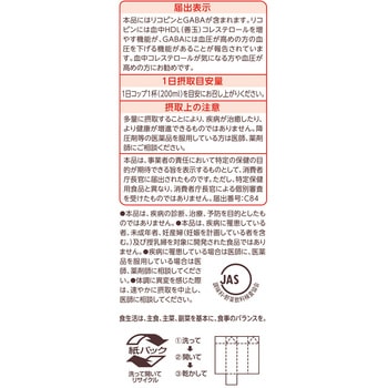 カゴメトマトジュース食塩無添加高リコピントマト使用900mlは機能性表示食品です。本品にはリコピンとGABAが含まれます。リコピンには血中HDL(善玉)コレステロールを増やす機能がGABAには高めの血圧を下げる機能があることが報告されています。血中コレステロールが気になる方や血圧が高めの方にお勧めです。1日コップ1杯(200ml)を目安にお召し上がりください。