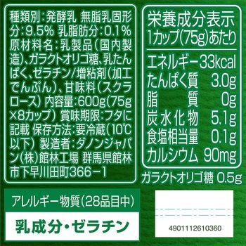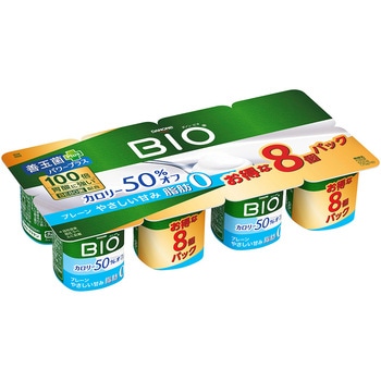 お腹の中の善玉菌を増やす効果のある、新成分「善玉菌パワープラス(ガラクトオリゴ糖のこと。善玉菌パワーとは善玉菌による健康維持のことで、プラスとは善玉菌が増えることです)」配合。100倍(メーカー従来品比。第三者機関において胃の環境を模した実験器具を用いて、BE80菌とメーカーのブルガリカス菌との胃液殺菌力に対する生存比較試験の結果)胃酸に強く、従来品ダノンビオプレーン加糖と比べてカロリー50%オフ。やさしい甘みつきで酸味を抑えたまろやかな口当たりが特長です。毎日の習慣に適したお得な8個パックです。
