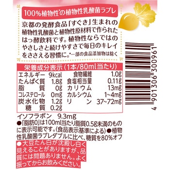 生きて腸で働く植物性乳酸菌ラブレ菌を配合した植物性原材料と植物性乳酸菌からうまれた植物性乳酸菌はっ酵飲料です。植物性乳酸菌ラブレ菌に加え植物性たんぱくが摂れます。乳不使用*(*本品の製造工場では乳を含む原料を使用して製造を行っていますが当該ラインでは十分な洗浄を行っています)100%植物性*(*一部の食品添加物は除く)でコレステロール脂肪0。白桃ヨーグルト風味で飲みやすく毎日続けやすい糖質オフ低カロリーのすっきりとした味わいですので朝の目覚めお風呂上りや夜寝る前などにもおすすめです。毎日の健康とキレイをおいしく手軽にサポートします。
