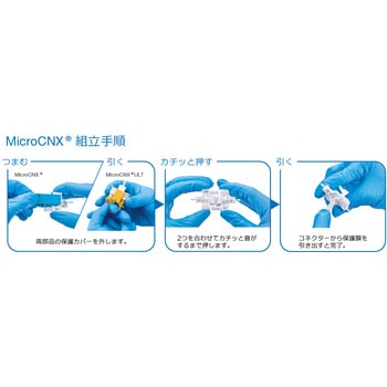 ・オス、メスの区別が無い形状なので、1種類の部品でシングルユースの仕組みが構築可能。・直感的な3ステップの接続方法(画像参照)で作業者による誤接続のリスクを軽減。・作業者の操作ミスを軽減する使いやすさで、性能や信頼性、安全面の懸念を軽減。・「CPCクリック」という接続完了を音で知らせる仕組み。・オートクレーブやガンマ線などの減菌に対応。