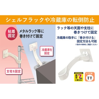 メタルラック等の天面や支柱、冷蔵庫の取手などに巻き付けて取付可能です。