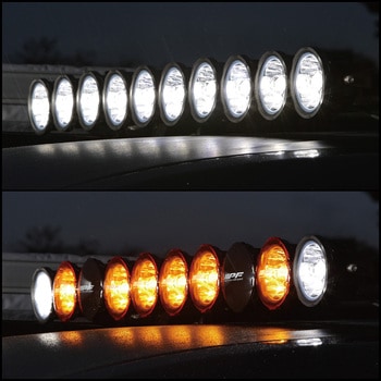 アンバー&ブラックのレンズカバーが付属し、レンズカバー非装着時は白色光で、アンバーカバーを装着することにより濃霧などの天候や路面の凹凸をより明瞭に照射。ブラックカバー*はランプ非使用時のレンズ保護に。