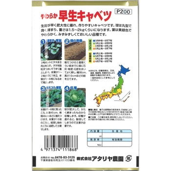 生育がはやく肥大性に優れ、作りやすいキャベツです。球は丸型でよく締まり、重さは1.5~2kgくらいになります。葉は黄緑色でやわらかく、みずみずしくておいしい品種です。