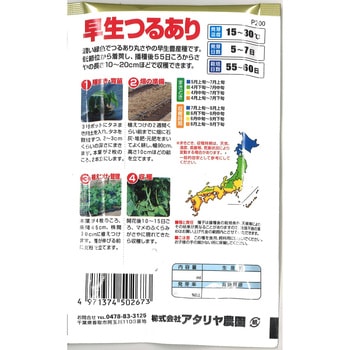 濃い緑色でつるあり丸さやの早生豊産種です。低節位から着莢し、播種後55日ことからさやの長さ10~20cmほどで収穫出来ます。