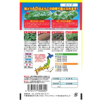 ・若どり60~65日::この段階では株が大きくなり、下葉から大きくなった葉を収穫できます。サラダやパスタにご利用いただけます。・80~85日で成株に!:株がしっかりしてつぎつぎと葉を収穫できます。フレッシュリーフの他にドライにしても