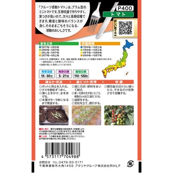 「フルーツ感動トマト」は、プラム型のミニトマトです。生育旺盛で作りやすく、実つきが良いので、次々と長期収穫出来ます。糖度と酸味のバランスがよく、そのままごちそうになる、感動のおいしさです。