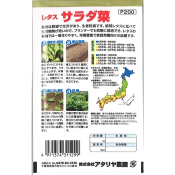 葉色は鮮緑で光沢があり、生育旺盛です。結球レタスに比べて生育期間が短いので、プランターでも気軽に栽培でき、レタスの仲間では一番作りやすく、栄養豊富で家庭菜園向けの品種です。