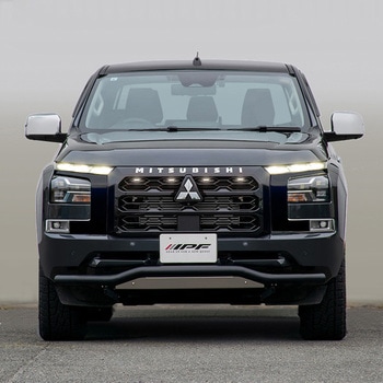 トライトンにIPF製マーカーランプをスマートにインストール。ベゼル付きグリルマーカーなので手軽に迫力のあるフロントビューを演出。必要な物が全て揃ったオールインワンモデル。グリル側無加工。両面テープ貼付けの簡単取付。純正の様な一体感を実現。『その他の灯火』に準拠した発光色と明るさ。LEDマーカーは300cd以下の車検対応品を使用。スモークレンズ/ホワイト光仕様。複数使いでも色のバラつきなし。安心の1年保証付。