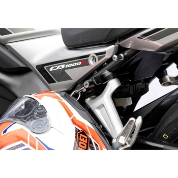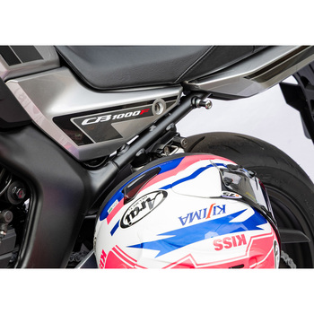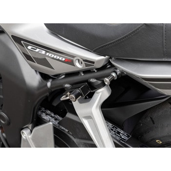 街乗りでも、ツーリングでも便利なアイテムとして人気のヘルメットロック!巷で話題のCB1000F用が登場。実際の使い勝手も考慮し、毎回 数種類のヘルメットを使ってヘルメットの収まりや干渉をチェック、そして商品化した実用アイテム。左タンデムステップと共締めステー:スチールブラック仕上げ