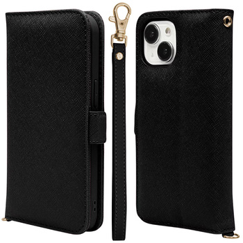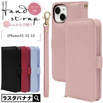 iPhone 15/iPhone 14/iPhone 13用 ハンドストラップ付き手帳ケース