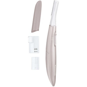 丸い刃先で肌にやさしい、約0.12mmのうす刃。水なしですっきり剃れる。肌の凸凹に合わせて動く、密着スイングヘッド。マユのお手入れができる。マユカバーとマユコーム付き。