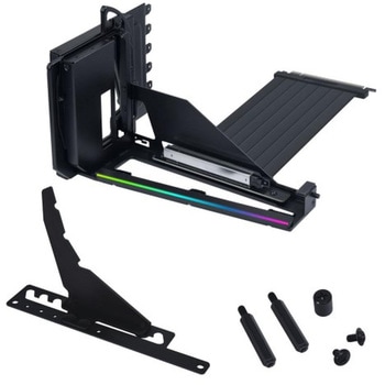 本製品は、従来のPCケース専用設計のGPU縦置きキットを汎用化された前モデル『LL-VG4-5-V3』を改良し、互換性をさらに高めました。 様々な4スロットの最新GPUに対応し、付属のPCIe 5.0に対応したライザーケーブルは200mmになっています。 また、グラフィックスカードを3つの角度で調整でき、ユーザーの好みに合わせた設置が可能です。 さらに、本製品は5V ARGB機能を内蔵しており、RGBイルミネーションによる鮮やかな照明効果でグラフィックスカードを引き立たせます。