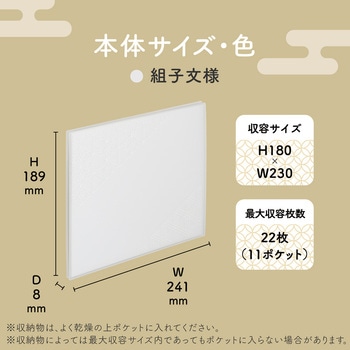 見開きサイズの切り絵・書き置き御朱印をきれいに収納できるポケットタイプの御朱印帳。中台紙を挟んで、おもて・うら両面に収納できるジャバラポケットタイプの御朱印帳です。うら表紙には拝観券などが入るポケットが付いています。組子文様の表紙は半透明なので、お気に入りの御朱印が透けて見えます。