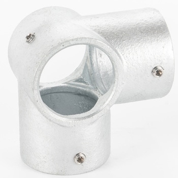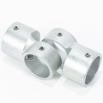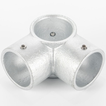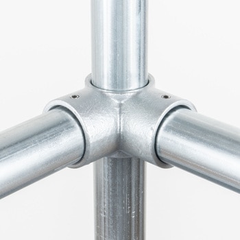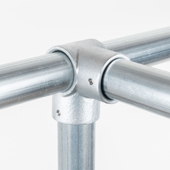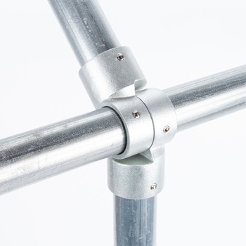 一般的な単管パイプ(外径48.6mm)専用の高強度ジョイント金具です。工具1つで簡単に組立ができ、作業性に優れています。M8ビスには緩み止め処理を施しており、組付け準備が不要ですぐに使用できます。締付後にビスの突起が目立たない構造で、意匠性に優れています。溶融亜鉛メッキ仕上げにより耐候性耐久性に優れ、場所を問わず安定して使用できます。取付幅が小さく、省スペースでの製作にも適しています。単管パイプを用いた幅広い構造物に対応し、柔軟に活用できます。
