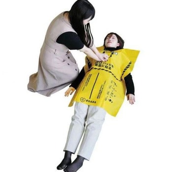 倒れた人の体が露出されるのを防いだまま、迅速にAEDの使用・胸骨圧迫を行うことができます。コンパクトに折りたためるので、AEDボックス内に収納可能です。