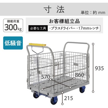 積載面は滑り止め付き(5箇所)で運搬中の荷物の安定に役立ちます。