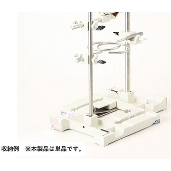 広くて重量のあるベース部のおかげで安定感があり、一時的な実験器具置き場など便利な機能も充実したスタンドです。
