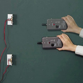 黒板にはり付け、解説しながら干渉実験を実演できます。受音器にはLED表示器があり、音の強弱を目で確かめることができます。黒板にはり付けた音源と受音器によりすぐに干渉パターンを描くことができ、演示実験に最適です。ミニプラグ(別途)を利用して、外部スピーカに接続したり、オシロスコープで波形を観察したりすることができます。3.4kHzの発振器が付属しています。