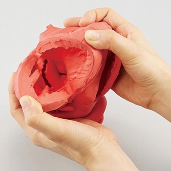 平均的な心臓の大きさでリアルに再現しています。男子中学生の心臓の大きさを再現しています。心臓の働きが手に取って理解できます。CTスキャンデータから作製されており、心臓の内腔をリアルに再現している生体モデルです。