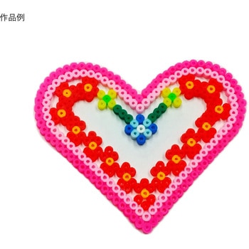専用のプレートにミニミニアイロンビーズを並べて、アイロンをかけるとビーズが熱でくっつき、1枚のきれいな作品が完成します。