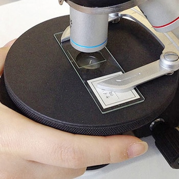 快適な操作性:指一本でクレンメルを上げてプレパラートが交換できます。ステージが丸いのでどの方向にも動かせて、観察対象を簡単に探すことができます。