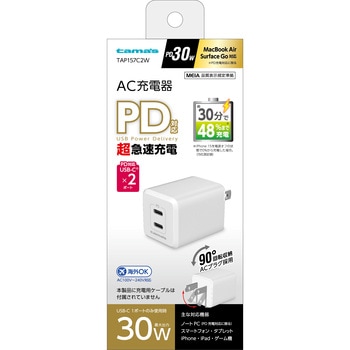 USB PD搭載でUSB-Cスマホの ”超急速充電” 対応PD30W出力で「MacBook Air」の充電に対応 ※USB-C単ポート接続時USB-C2ポート搭載でスマートフォンの2台同時充電に対応90°可動収納式プラグ採用