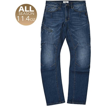 大きいサイズ バイク プロテクター付 デニム ナロークロッチ ストレッチ ブルー
