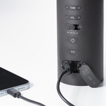 付属品本体/USBケーブル/取扱説明書[保証書付]質量(g)約350(乾電池、USBケーブル含まず)電源単4形アルカリ乾電池×3本(DC4.5V)乾電池は別売、コンデンサー式寸法(高さH×幅W×奥行D)(mm)195×65×65表示【音量】AM/FMラジオ:MAX 63、Bluetooth:MAX 16光源【LEDランタン】電球色、昼光色防塵防水性能IP54ソーラーパネル種類単結晶ソーラーフィルム、約2.8×44×24mm 0.15W 5V入力端子USB Type-C(モバイルバッテリー、ACアダプター用)スピーカーΦ36mm、実用最大出力340mW受信周波数AM:522~1710kHz、FM:76.0~108.0MHz(ワイドFM対応)アンテナAM:内蔵フェライトバーアンテナ、FM:ケーブルアンテナ出力端子USB Type-A(スマートフォン充電用)明るさ(Lm)電球色:約15、昼光色:約16音量(dB)【SOSアラーム】約81Bluetooth【受信機】登録番号:XAR-J010、バージョン:5.4、クラス:class2、対応プロファイル:A2DP 1.3.2、AVRCP 1.6.2内容量1個