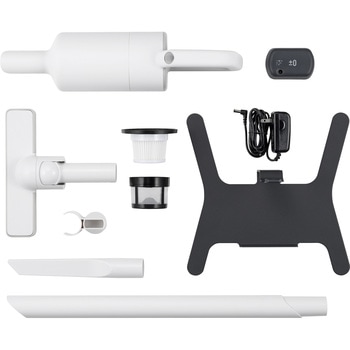 付属品本体/バッテリー/ロングノズル/フロアノズル/隙間ノズル/隙間ノズルホルダー/スタンド/専用ACアダプター/EPAフィルター、メッシュフィルター(2つのフィルターは重なっており、ダストボックス内に装着済)/取扱説明書[保証書付](1)材質本体:ABS、スタンド:スチール質量(kg)ハンディユニット:0.8、ロングノズル+フロアノズル装着時:1.2色ホワイトスイッチどのモードからも長押しで停止可能電源AC100V (50/60Hz)コード長さ(m)1.8寸法(高さH×幅W×奥行D)(mm)ハンディユニット:406×100×134 / ロングノズル+フロアノズル装着時:965×220×134連続使用時間標準57分、強16分、ハイパワー11分充電時間2.5時間ダストボックス容量(L)0.45吸引力(W)【ハイパワー】41内容量1台