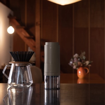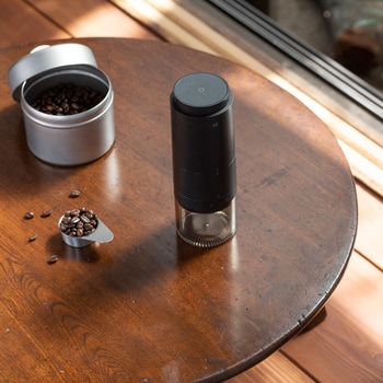 スイッチひとつでいつでも挽きたてのコーヒーが楽しめる電動コーヒーミルです。1回で約25gの豆を挽くことができます。豆が挽き終わったら自動停止、USB充電式なのでキャンプや野外にも持ち出せます。刃は摩擦熱の少ないセラミック製で、幅広い挽き目に対応できるコニカル式を採用しました。