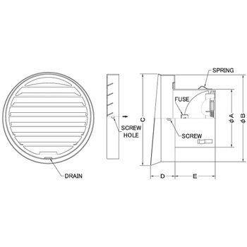 外壁用ステンレス製換気口 フラットグリル 大口径 金網型10メッシュ 防火ダンパー付
