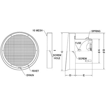 外壁用ステンレス製換気口 フラットグリル 大口径 金網型10メッシュ 防火ダンパー付