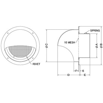 外壁用ステンレス製換気口 セルフード 同芯金網型10メッシュ ワイド水切り付 防火ダンパー付
