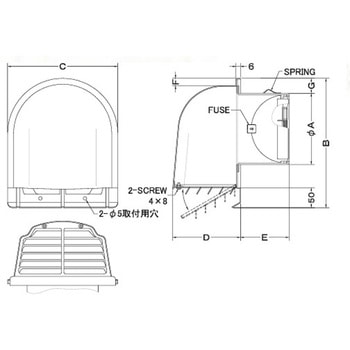 丸型ガラリ (防火ダンパー・フード付き/SUS)