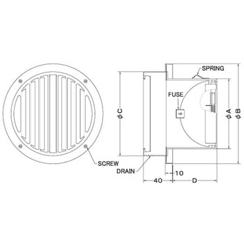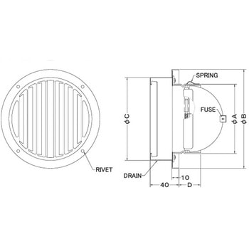 外壁用ステンレス製換気口 ベントキャップ 防火ダンパー付 低圧損(厚型)