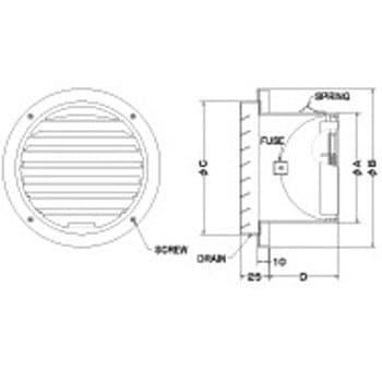外壁用ステンレス製換気口 ベントキャップ 大口径 防火ダンパー付(厚型)