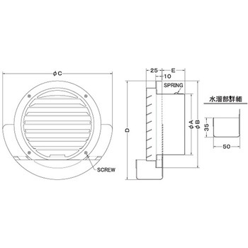 外壁用ステンレス製換気口 ベントキャップ 大口径 防火ダンパー付 低圧損(厚型)
