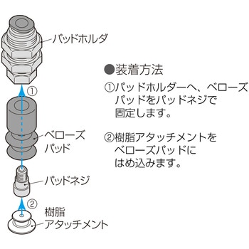 ・吸着痕を残さずワークの斜め姿勢へ追従しますので、ガラス搬送・塗装工程・成形品取出しに最適。・樹脂アタッチメント材質は、PEEK、POM、導電性PEEKの6材質が選択可能です。・「流路に銅を主成分とする金属材料不使用」・「低濃度オゾン対策」向けの分野に対応するパッドネジ金属材質も選択可能です。