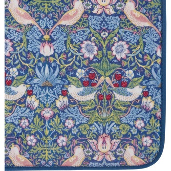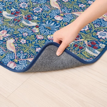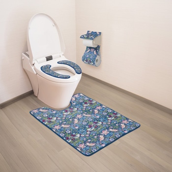 ウィリアムモリスの「いちご泥棒」を全面にあしらった愛らしく華やかなトイレマットです。中材にふんわりウレタンを挟み込んだ3層構造。約1cmの厚みがあり肌触りが良く素足でも快適な踏み心地です。裏面は滑りにくい加工をしてありズレにくく安心してご使用いただけます。トイレのサイズに合わせ奥行60cmと80cmがあります。洗濯ネットに入れて洗濯機で丸洗いもOK。清潔にご使用いただけます。