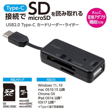 用途変換アダプタ機能付きのカードリーダー・ライター付属品取扱説明書適合【スピードクラス】~Class10電源バスパワー本体質量(g)10対応OSWindows11、10/macOS10.15以降/ChromeOS/iPadOS16以降(Type-C搭載機器)/iOS17以降(Type-C搭載機器)対応機種Type-C端子を搭載したパソコン、スマートフォン、タブレットインターフェースアップストリーム(PC側)Type-C(オス)、ダウンストリーム(接続機器側)Type-A(メス)×1本体寸法(幅W×奥行D×高さH)(mm)47×22×13対応メディアSD(HC、XC)/microSD(HC、XC)最大データ転送速度(Mbps)(理論値)480ケーブル長(cm)2最大供給電流(mA)400最大供給電圧(V)5USB規格ver.2.0内容量1個