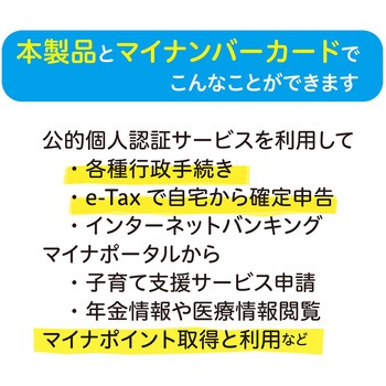 本製品とマイナンバーカードをPCに接続すれば以下ができるようになります。