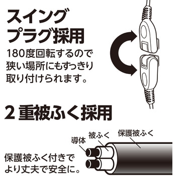 狭い場所でも設置しやすい180度回転するスイングブラグ採用。