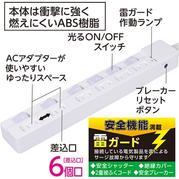 安全機能満載スイッチ付OAタップ/6個口/1m/ブラック