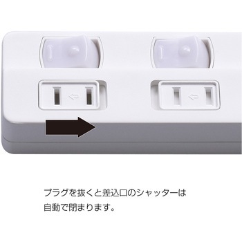 シャッターは差し込み口がスライドする独自機構。ホコリやイタズラを防止します。