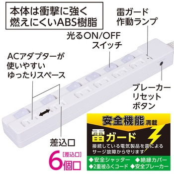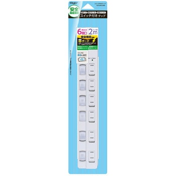 安全機能満載スイッチ付OAタップ/6個口/2m/ホワイト