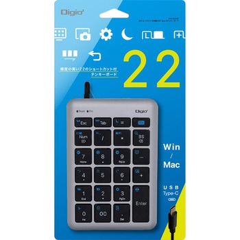スクリーンショットやブラウザ操作など頻度の高い22のショートカットが付いたUSBテンキーボード。
