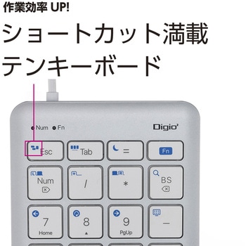 スクリーンショットやブラウザ操作など頻度の高い22のショートカットが付いたUSBテンキーボード。