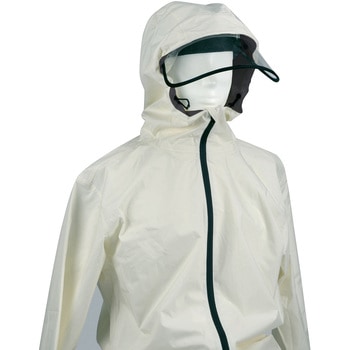別売のバイザー(V-002)をフードツバ裏のドットボタンに取り付ければ、顔が濡れるのを防げます。