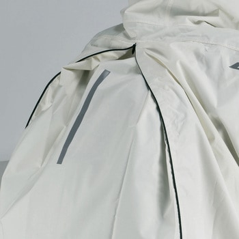 手の甲をカバーし袖口のズリ上りも防ぐ手甲カバー、お尻の縫い目をなくし防水性を高めたパンツ、パンツの裾巾調節機能、背面右肩とパンツ両裾裏リフレクターなど便利な機能が付いています。