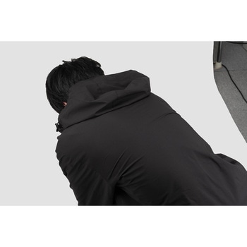 ウインドブレーカーでも合羽でもないNEWコンセプトウエア。オールシーズン、どんなシーンでも使い勝手の良いジャケットです。背中生地に斜め裁断を施し、よく伸びる高いストレッチ性を実現しました。ムレやすい腕の下にはベンチレーション(通気口)を装備してムレ感を抑えます。袖とフードに取り付けられたメッシュにより、さらりとした肌触りです。突然の雨にも対応可能な耐水透湿素材です(レインウェアではありません)。